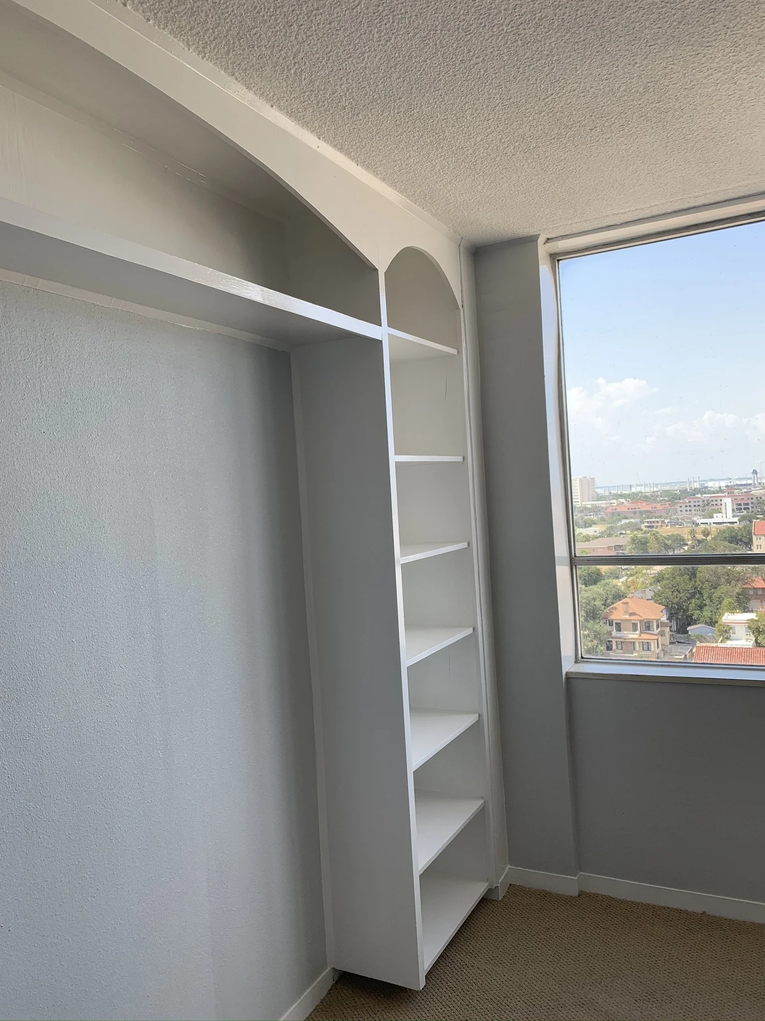 This high-rise condo in downtown Corpus Christi got a modern refresh from the Level Line team. Updates included a bathroom remodel with new fixtures, tile work, and flooring, along with custom built-in shelving for added storage and style. Clean finishes, fresh paint, and smart upgrades brought this space back to life — all while keeping the skyline view front and center.